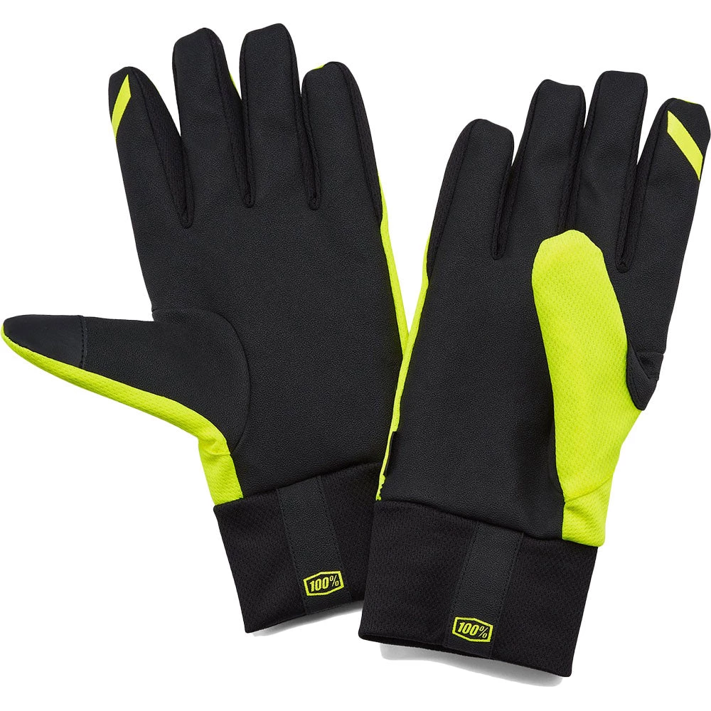 Materials: 88% Polyester, 10% Polyurethane, 2% Elastane. Waterproof, breathable insert, silicone printed graphic on palm, reflective graphic to improve visibility in low light, extended neoprene cuff, conductive index finger and thumb.