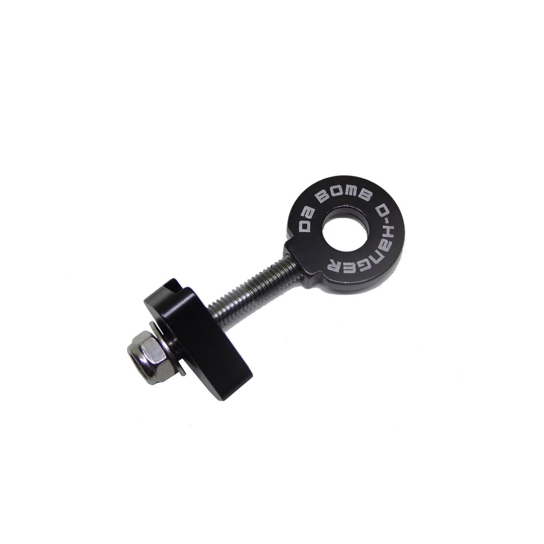 Made from forged and machined 6061 Aluminium and finished in black anodising, with stainless steel bolt threads, washer and Nyloc nut, the DaBomb D-Hanger is strong, functional and looks sharp.