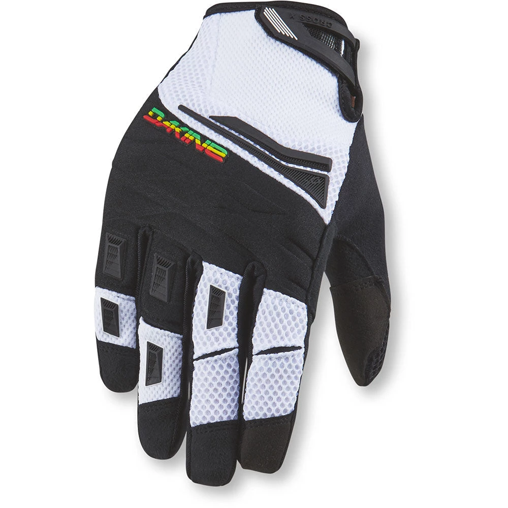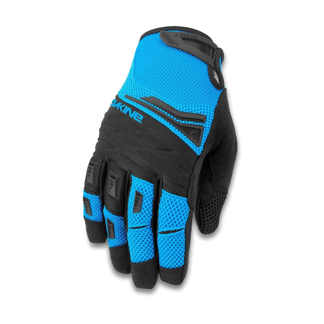 The Dakine Cross-X Gloves are designed for aggressive riding. Featuring 3mm of foam padding on the palm plus sonic deflectors on the knuckles. Moisture-wicking 4way stretch polyester with air mesh keeps your hands dry and cool, while the synthetic suede palm and silicone gripped fingertips offer a great bar grip. The fit is completed with a neoprene knuckle flex panel and an asymmetrical cuff with adjustable closure.