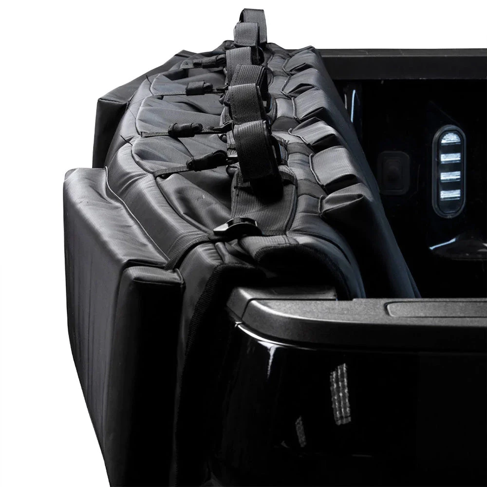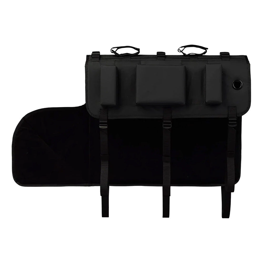 Get the Fox Factory look with the Overland Tailgate Pad to keep your bike safe and your ute protected. The heavy-duty PVC tarpaulin on the outside is super durable, and the micro-brushed inner lining will keep your tailgate scratch-free. The padded raised bumpers and adjustable downtube straps will keep your bikes separated (…you gotta keep ’em separated) and there is room for up to 6 bikes.