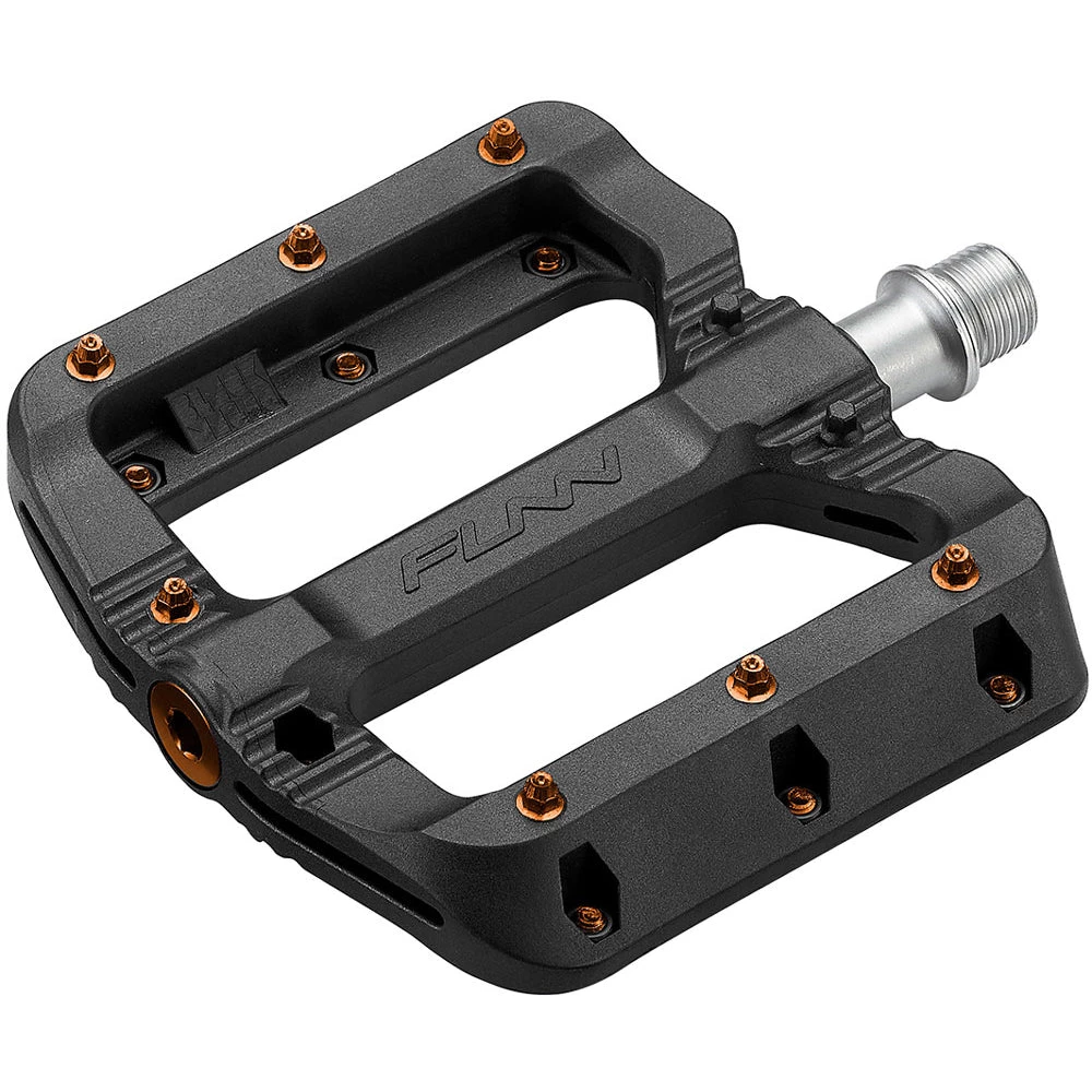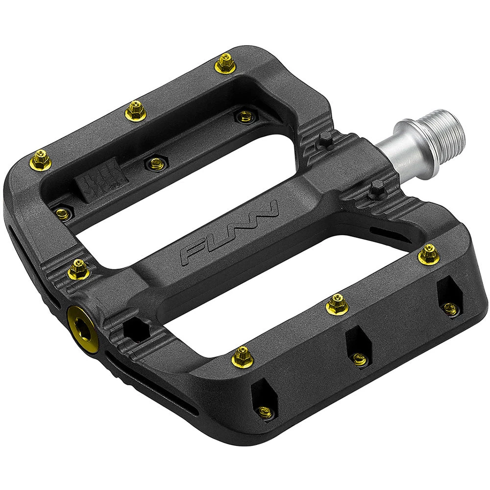 It pairs a super tough and super light fibreglass-reinforced thermoplastic platform with a cromo axle for a tough, grippy and affordable pedal.
