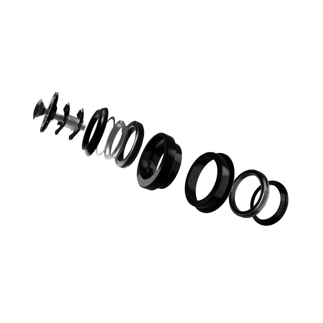 Proudly machined in the UK from 6082 T6 aluminium with a black anodised finish, the headsets use sealed angular contact bearings and come complete with all parts required for fitment (top-cap, star-nut, bearings and crown race).