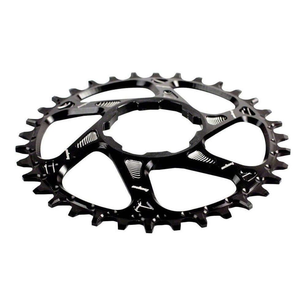- Narrow/wide chainring design retains the chain without the necessity of an added retention device.