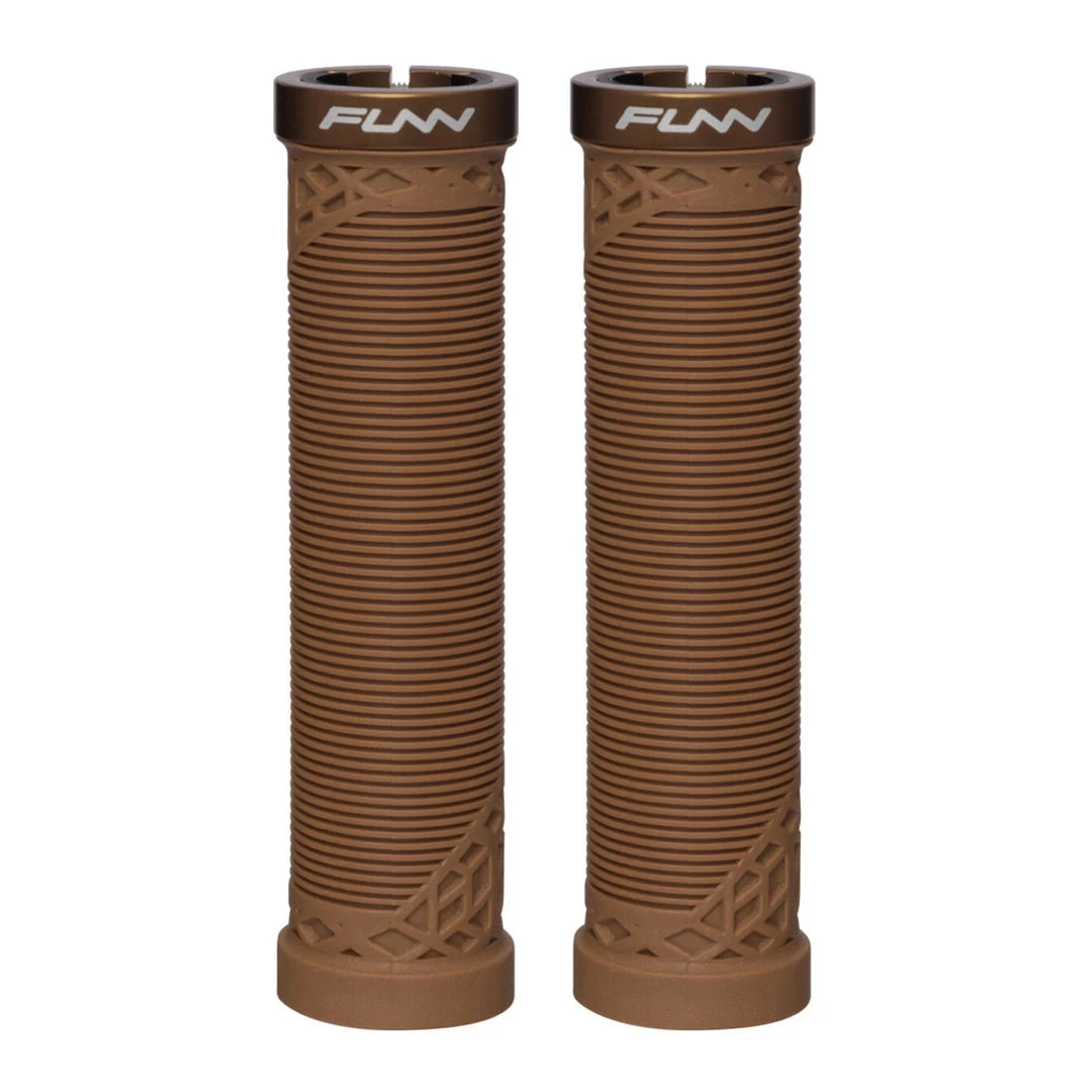 The Funn Hilt grip is perfectly balanced for every two-wheeled duel you’ll encounter. Our proprietary compound guarantees perfect comfort, handling and durability. A single lock-on design clamps them tightly in place so you can focus on attacking the trail. The tiny but mighty outer bump-stop adds protection against impacts and added grip. If all that’s not enough, the Hilt is super light at just 96g so it won’t hold back your feather-weight race bike.