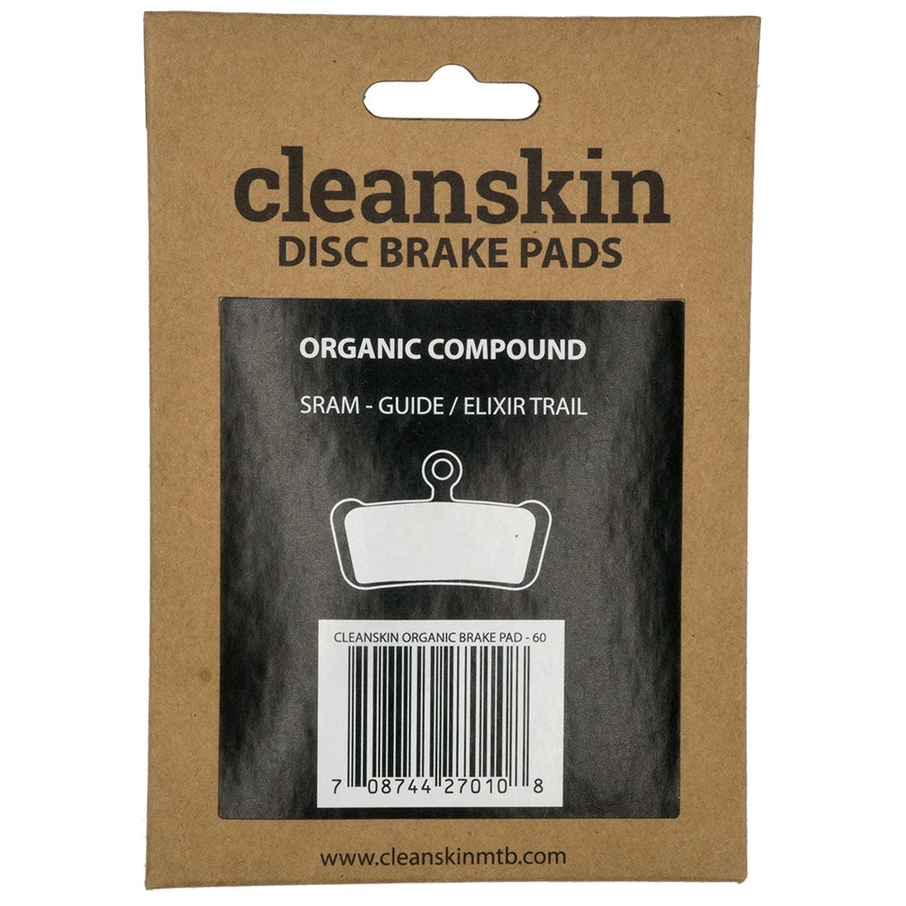 Cleanskin Guide And Elixir Trail Disc Brake Pads will pair perfectly with a range of AVID/SRAM Guide and Elixir brakes. They have a steel backplate and come in two compounds: organic and sintered. Organic pads have more initial bite and quieter braking. Perfect for drier riding conditions and lighter riders, however, compound choice is very much a personal preference. For any wet weather riding, sintered pads are more of an ideal choice. Sintered – Metallic pads last longer and provide more consistent braking power on those long descents.