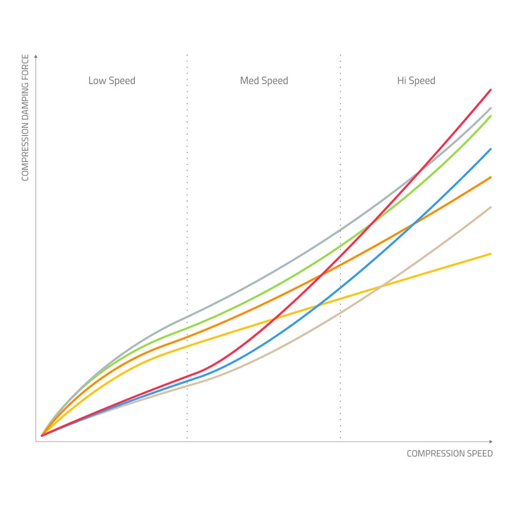 The Gold valve is the closest to the “industry-standard” set-up of a MTB fork: great sensitivity in the first two centimetres of travel, the right amount of support at low and medium speeds, and a constant though gentle progressivity. A setting that allows riders with different riding styles to have comfort and support, combined with the advantage to use always all the available travel.