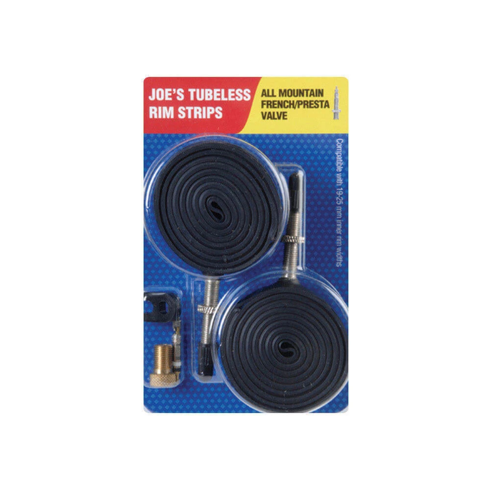 Joe’s Tubeless Rim Strips are specifically designed to secure tyres and prevent loss of air. Each kit uses Presta valves with removable cores and offered in different widths.