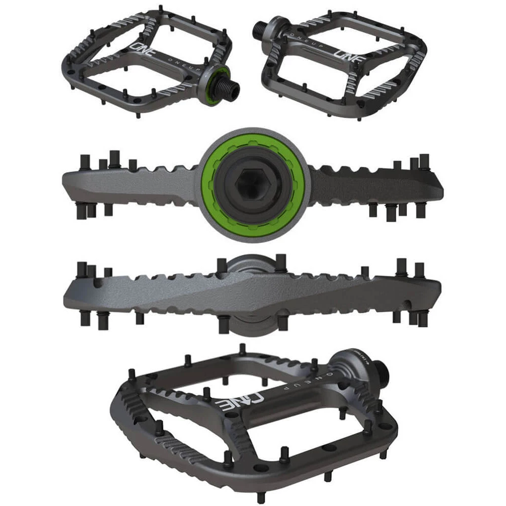 OneUp doesn’t cut any corners when they design a new product and their Aluminium Pedals are no exception! The Aluminium Pedals bring together everything you need to make these the best possible pedals for all types of riding. Quality materials, solid construction, good platform size, good pin height. With 4 double sealed cartridge bearings (per pedal) spinning on a Chromoly steel axle these pedals will last you many an adventure.