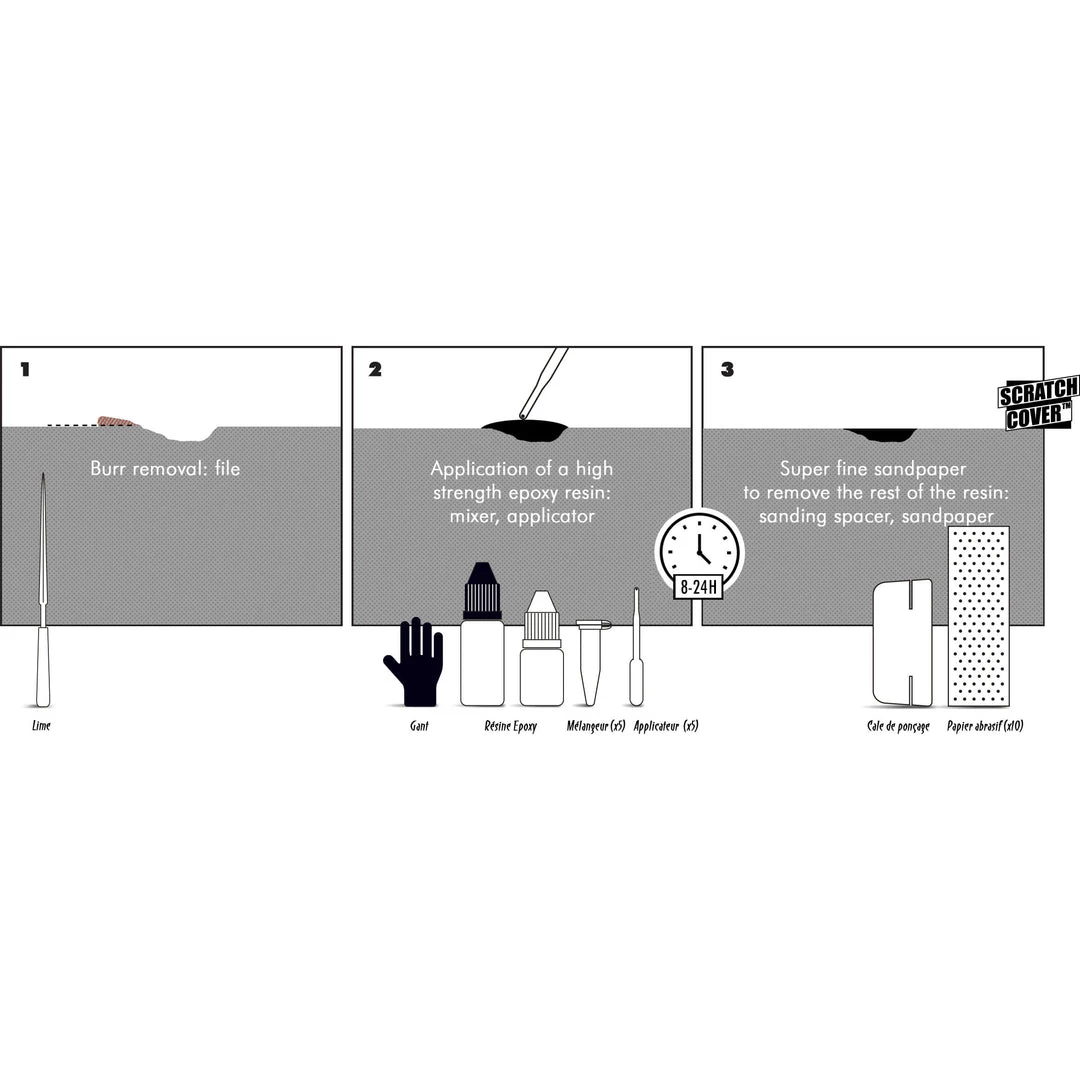 Note: The repaired area will have a slightly matte finish after the sanding process. If you find this unsightly and/or your eye starts twitching when you look at it Sendhit recommends the use of a high-quality metal polish such as Autosol Metal Polish which can restore it to a glossy finish.