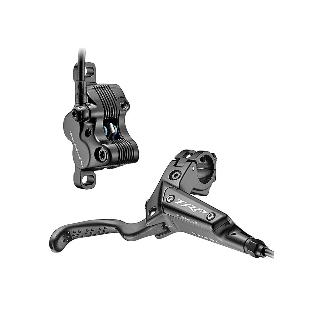 Tested on world cup circuit trails which are known for being technical, fast and steep, the Quadiem Disc Brake handled them all with ease. They feature a stylish dimpled and drilled lever designed by Aaron Gwinn, and a finned CNC’d caliper for better cooling. If you are looking for serious stopping power, predictability and world cup level performance, then the TRP Quadiem Disc Brake is for you.