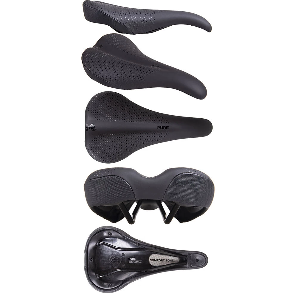 All Mountain and distance riders love the Pure saddle. It’s a great all-rounder with thick padding for comfort, a drop nose to prevent hang-ups, and a rising whale-tail rear to give you something to push against on the climbs.