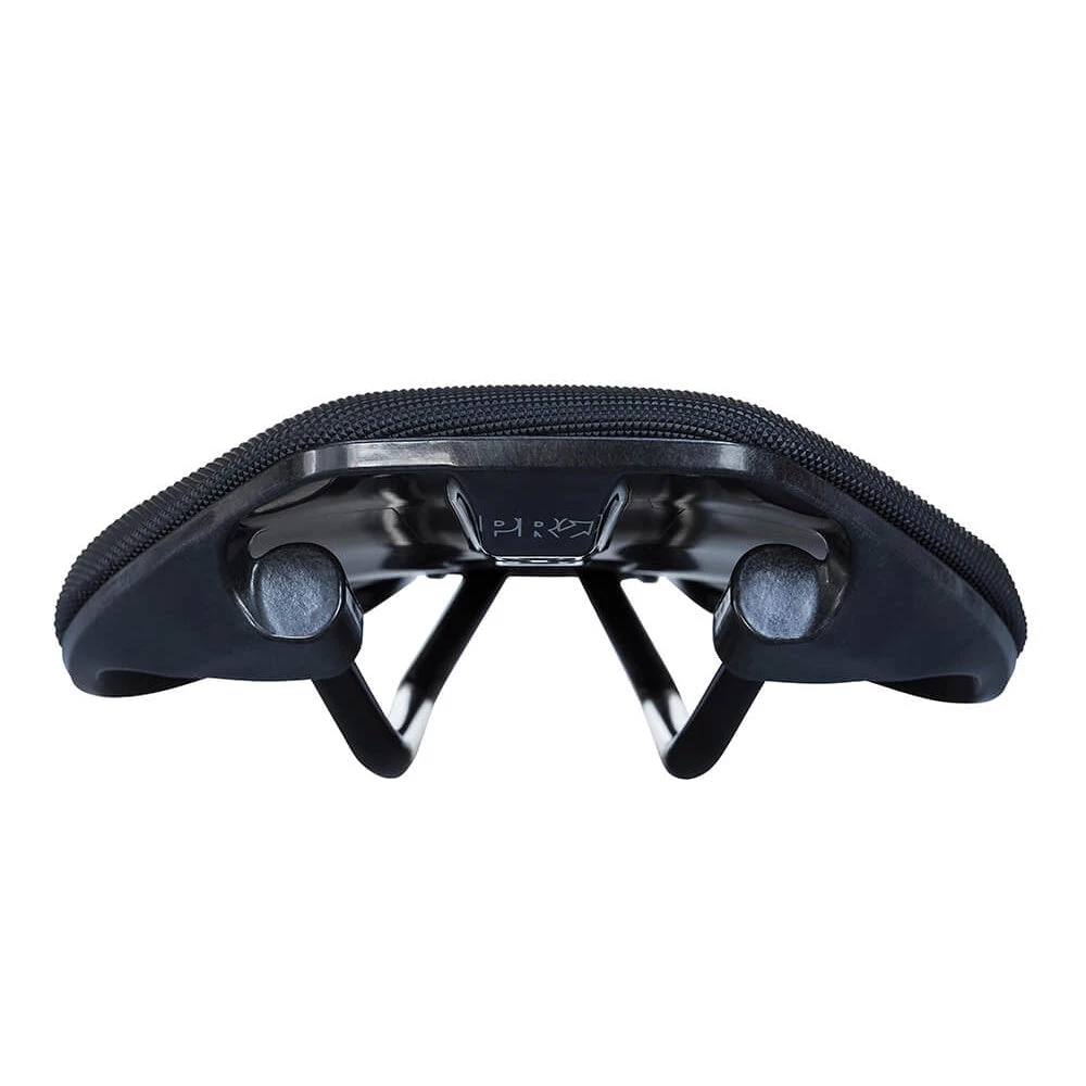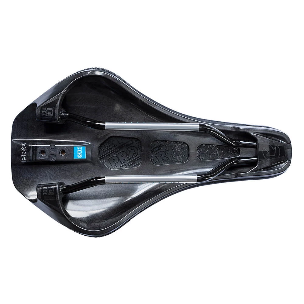 The PRO Stealth is a designed for mountain bikers and featured a broad channelled nose to provide support and pressure relief while climbing and a short overall length to make it easier to move around on the bike. The stainless steel rails are suspended at the rear to provide extra shock absorption while seated, and the mounts on the underside of the shell allow for the fitment of PRO’s aftermarket accessories such as tools, CO2, and rear-mounted camera.