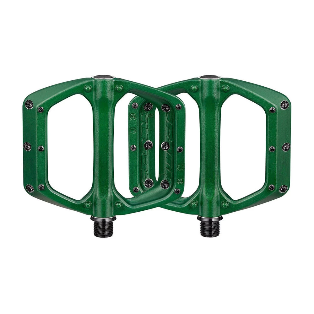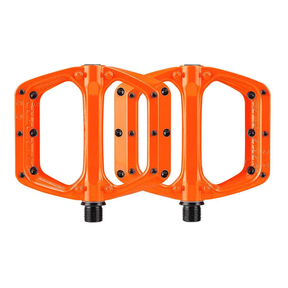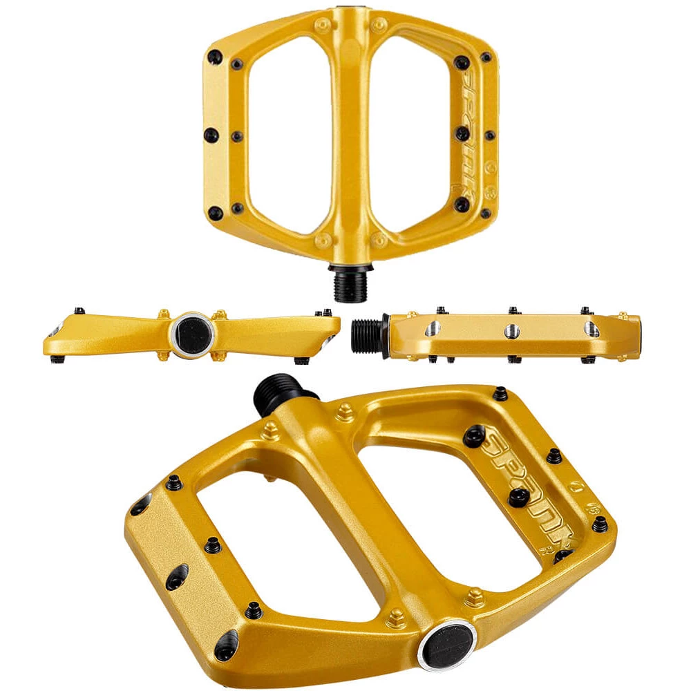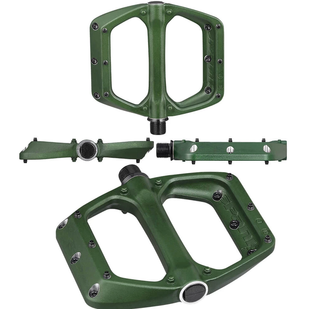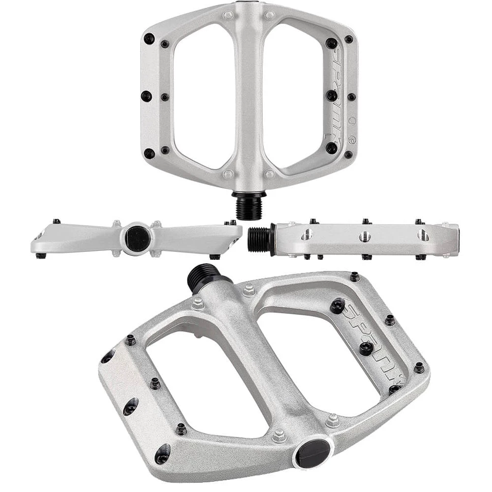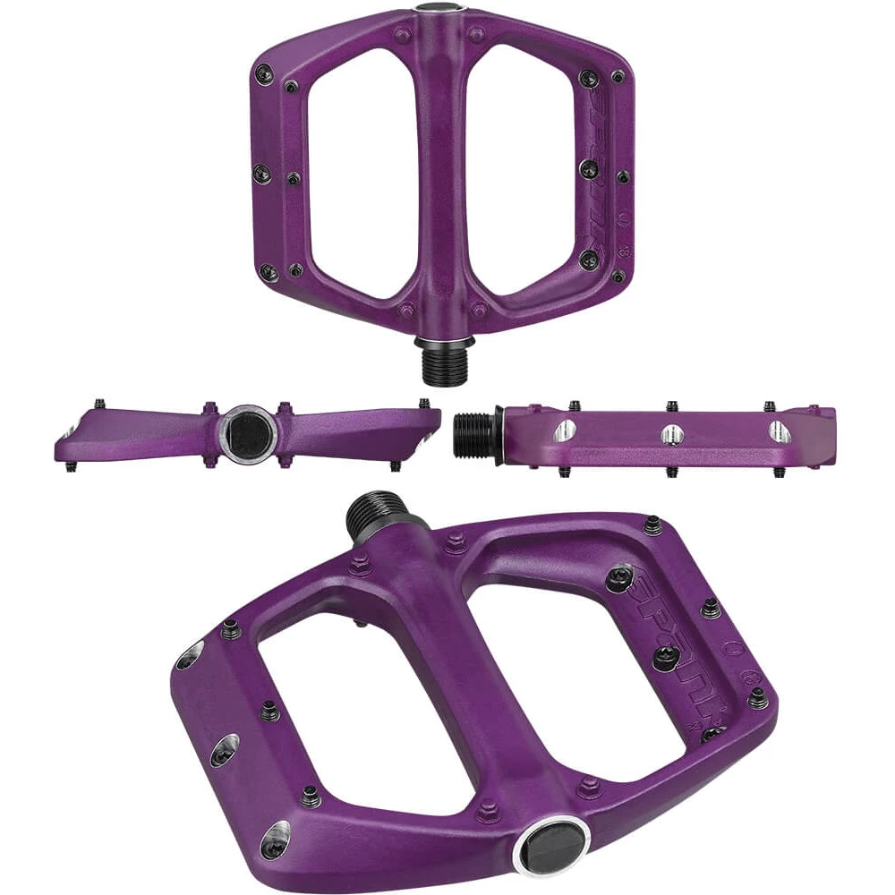 The Spank Spoon DC pedal offers a lot of the same technology of a higher priced pedal at the cost of most composite pedals. This purpose built MTB pedal features a large platform size with a concave profile offering support and grip when you need it most. The forged chromoly axle offers superior strength and durability, combine this with a shot-peened surface, and you get a pedal super resistant to fatigue and impacts. All this, plus they are available in a bunch of cool Mottled/Grunge anodized finishes.Â