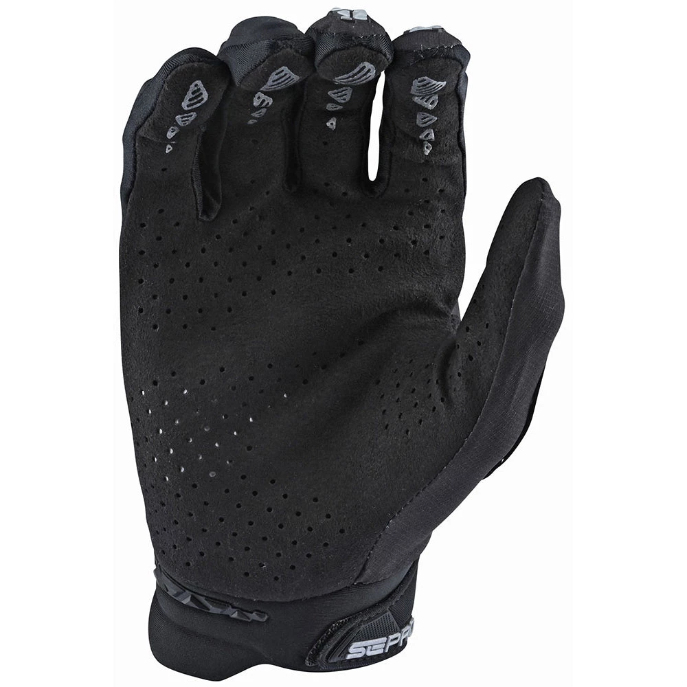 Troy Lee Designs gloves are all researched, designed and meticulously tested before they make their way onto the hands of great athletes around the world. The SE Pro Glove features a compression-moulded cuff and a single layer palm with laser perforated holes for breathability. The sonic welded TPRS provides extra protection to the back of the hand, and the silicone print offers a grippy spot on the brake lever.